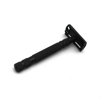 Maquinilla de afeitar esencial de viaje de seguridad de doble filo negro mate para hombres y mujeres